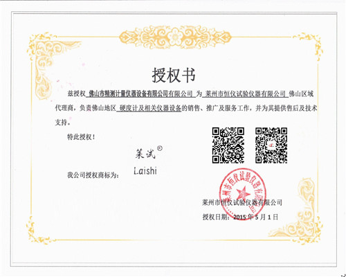 硬度計授權證書